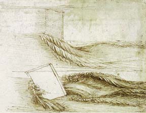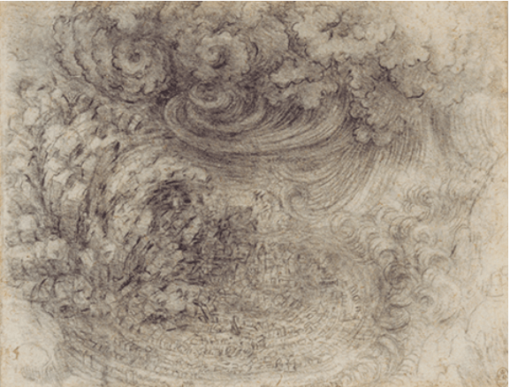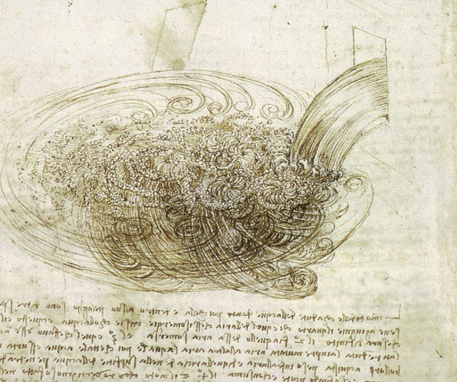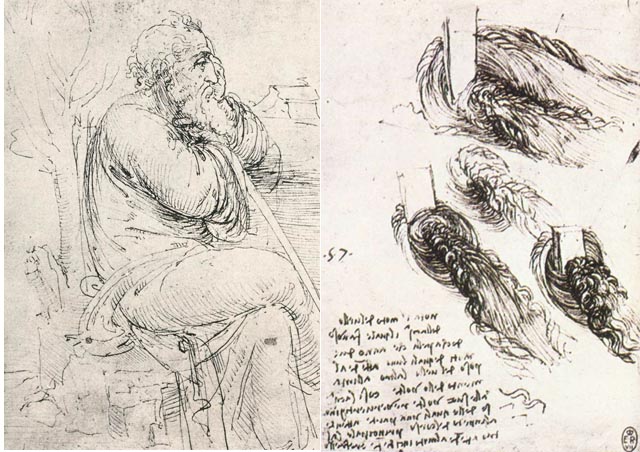 Leonardo da Vinci also had an obsession with the movement of water and great floods. He often drew in his sketch books the beauty of moving water along with the horrors of devastating floods. Near the end of his life, he was making sketches that looked as though they were made by an insane person obsessed with the apocalypse and the Earth being consumed by great floods. I wonder if elderly Leonardo were alive today reincarnated, would he be outside of some McDonald’s in a downtown city wearing nothing but rags holding a sign on broom stick saying “The End is Nigh. Prepare.” Probably best not to think about that possibility.